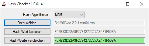 Mit dem Hash-Checker können die MD5 und die SHA-1 Checksummen für eine Datei berechntet werden. Per Copy&Paste lassen sich die berechneten Werte mit den Angaben auf der Downloadseite vergleichen. Der Hash-Checker wurde in VB.Net programmiert und wird von mir als Freeware zur Verfügung gestellt.